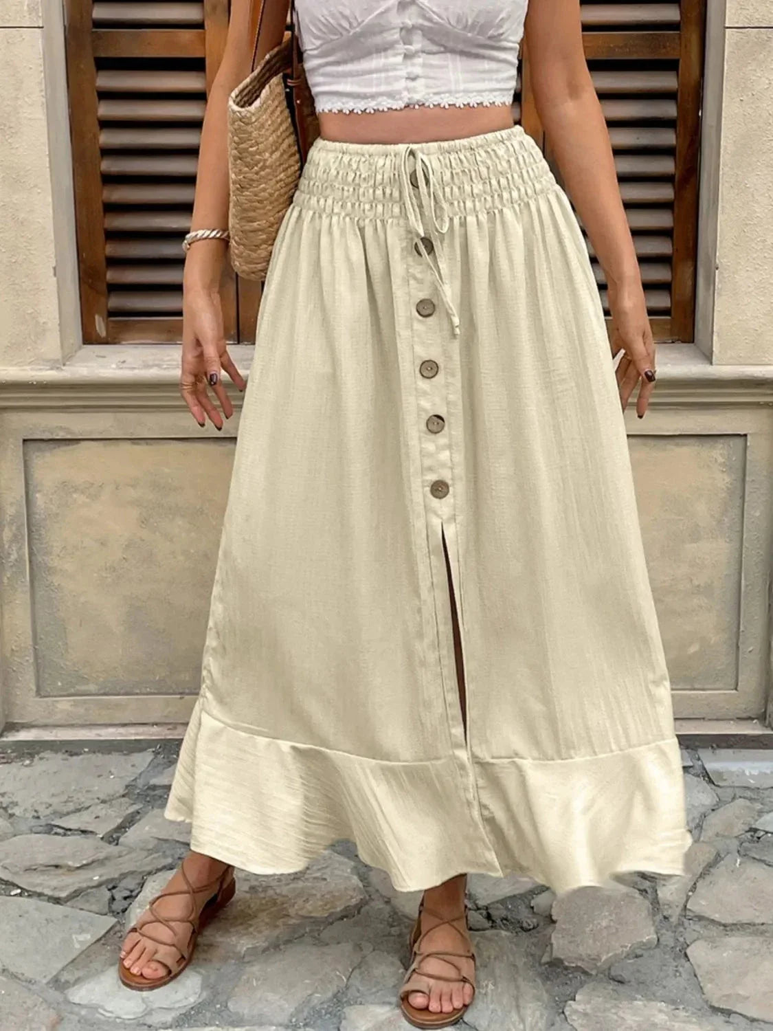- Features:Tied,Decorative Button,Ruffled,Slit,Lace,Smocked